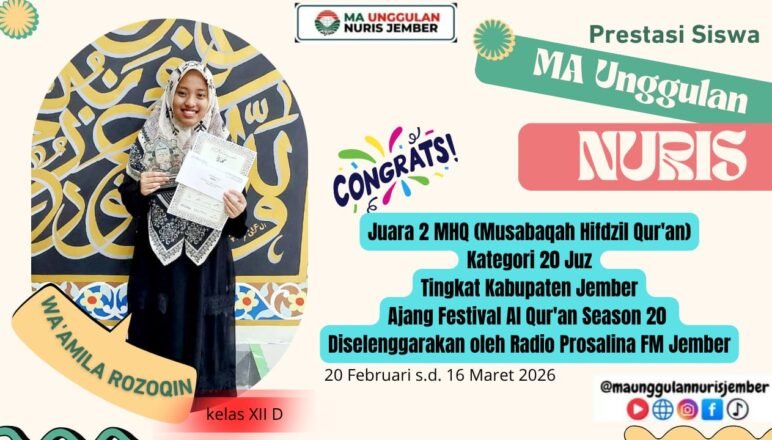 Prestasi28/03/2026 Wow, Santri MA Unggulan Nuris Juara 2 Festival Al Qur’an Season 20 Radio Prosalina FM Jember Semangat dan Fokus dalam Mempelajari Al Qur’an Kunci Wa’amila jadi … Share