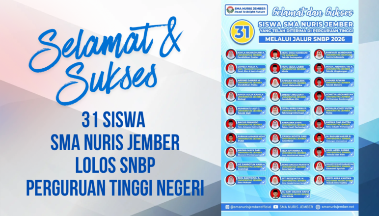 Alumni SMA, Pojok Alumni05/04/2026 31 Siswa SMA Nuris Jember Lolos SNBP 2026, 1 Tembus Kedokteran UNEJ SMA Nuris Jember Sukses Antarkan Siswanya Raih Kursi di Kampus … Share