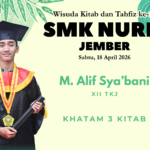 Prestasi27/04/2026 Siswi Aktif Pramuka SMA Nuris Jember, Siti Rizqiyatul Sukses Khatamkan 16 Kitab di Wisuda Kitab dan Tahfizh ke-X Berbekal Konsentrasi dalam Kesunyian, Siti Rizqiyatul Hasanah Sukses Khatam 16 … Share