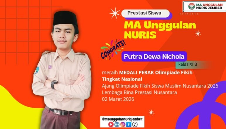 Prestasi31/03/2026 Bikin Bangga MA Unggulan Nuris, Putra Dewa Nichola Raih Medali Perak Olimpiade Fikih Nasional Dari Cita sebagai Guru PAI, Dalami Kitab Kuning hingga Perbanyak … Share