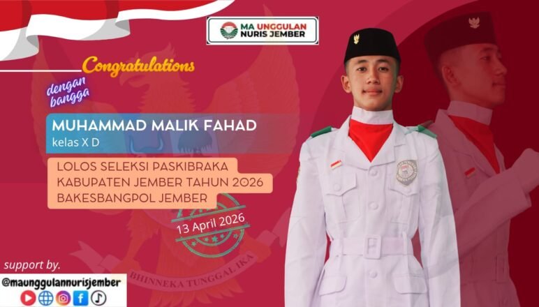Prestasi18/04/2026 Lolos Seleksi Paskibraka Kabupaten Jember 2026, Hafiz dari MA Unggulan Nuris ini Membanggakan Tak sekadar Berprestasi di Bidang MHQ, tetapi juga Sukses Melewati … Share