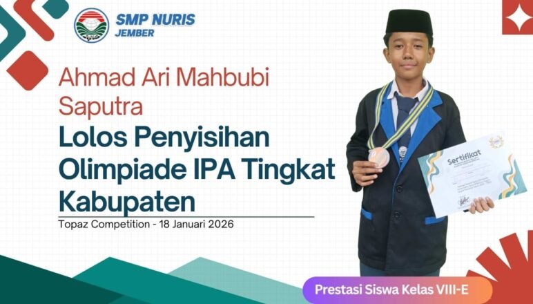 Prestasi30/03/2026 Dari Catur ke Matematika, Gilang Ukir Medali Perunggu untuk SMP Nuris Jember di OSI 2 Konsistensi Belajar Antarkan Siswa VIII E Raih Prestasi Tingkat Provinsi … Share