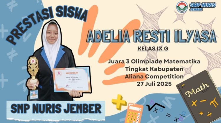 Pesantren Nuris — Piala lagi? Medali lagi? Jangan-jangan lemari piala sekolah sampai minta ampun karena terus-menerus disumbat oleh prestasi dari satu nama yang itu-itu juga. Adelia Resti Ilyasa, siswi kelas IX G SMP Nuris Jember yang baru saja menambah koleksi kemenangannya dalam dunia perolimpiadean!