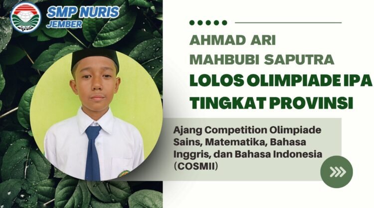 Siswa hebat tersebut adalah Ahmad Ari Mahbubi Saputra, atau yang akrab disapa Putra, dari kelas 8E. Ia berhasil meraih lolos ke tingkat provinsi dalam bidang IPA pada ajang bergengsi COSMII yang diselenggarakan oleh Fakultas Ilmu Budaya (FIB) Universitas Jember. Kompetisi yang diikuti oleh banyak pelajar berbakat ini dilaksanakan pada hari Ahad, 10 Agustus 2025 lalu. Kemenangan Ari menjadi bukti bahwa siswa SMP mampu bersaing di level yang lebih tinggi.