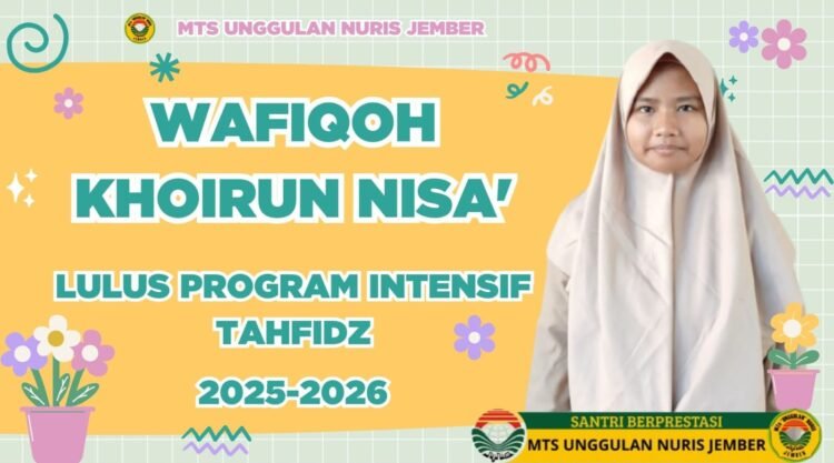 Pesantren Nuris – Siswi MTs Unggulan Nuris Jember yakni Wafiqoh Khoirun Nisa’, berhasil menuntaskan masa karantina dengan penuh kesungguhan. Momen ini menjadi bukti nyata dedikasinya dalam menempuh perjalanan menghafal Al-Qur’an di lingkungan pesantren.