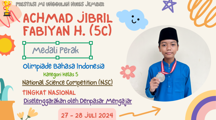 Pesantren Nuris – Daftar talenta dari seorang Achmad Jibril Fabiyan Hamdi sepertinya terus bertambah panjang. Siswa multitalenta dari kelas 5C MI Unggulan Nuris Jember yang selama ini kita kenal sebagai jagoan Bahasa Inggris, kini membuktikan bahwa dirinya adalah seorang maestro bahasa sejati dengan menaklukkan panggung olimpiade Bahasa Indonesia.