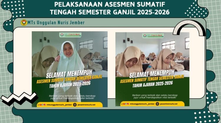 Pesantren Nuris – Pelaksanaan Asesmen Sumatif Tengah Semester (ASTS) MTs Unggulan Nuris Jember Tahun Ajaran 2025/2026 resmi dimulai pada Jumat, 12 September 2025, dan akan berlangsung hingga Sabtu, 20 September 2025. Seluruh rangkaian kegiatan ini digelar serentak dengan melibatkan siswa dari berbagai jenjang yang siap mengukur kemampuan belajarnya setelah beberapa bulan menempuh materi di kelas.
