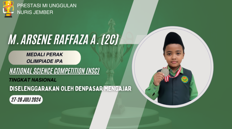 Pesantren Nuris – Di tengah dunia yang penuh dengan suara riuh, terkadang bintang yang paling terang justru bersinar dalam ketenangan. Filosofi inilah yang seolah dihidupkan oleh M. Arsene Raffaza A., seorang siswa istimewa dari kelas 2C MI Unggulan Nuris Jember. Dari balik sifatnya yang pendiam, ia berhasil membuat gebrakan luar biasa dengan membawa pulang medali dari panggung olimpiade tingkat nasional.
