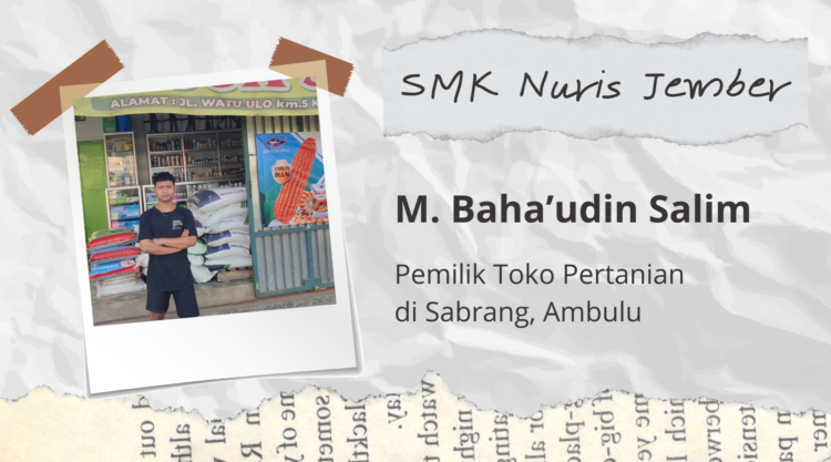 Pesantren Nuris – Semangat berwirausaha sejak muda kini mulai terlihat pada sosok Muhammad Baha’udin Salim, alumni jurusan Teknik Komputer dan Jaringan (TKJ) SMK Nuris Jember angkatan 2025. Anak muda asal Karanganyar, Ambulu, Jember ini tengah merintis sebuah usaha toko pertanian yang berlokasi di Jalan Watu Ulo, Krajan, Sabrang, Ambulu.