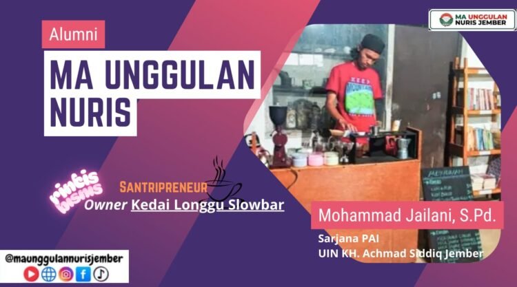 Pesantren Nuris – Berawal dari kesukaan menikmati kopi hingga keingintahuan secara didaktif soal perkopian dengan aktif di berbagai komunitas serta pernah berkarier sebagai barista di salah satu kafe di Jember, membuat Mohammad Jailani terinspirasi membangun bisnis serupa, tetapi dengan sentuhan edukasi dan pengalaman ngopi yang original dan mengesankan.