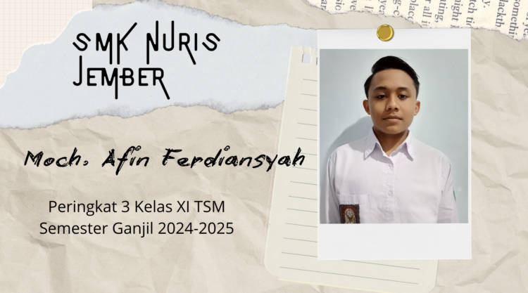 Pesantren Nuris – Mesin bisa jadi rumit bagi sebagian orang, tapi tidak bagi Moch Afin Ferdiansyah. Siswa kelas XII TKR SMK Nuris Jember ini justru merasa hidup ketika berada di bengkel. Dengan tangan terampil dan pikiran tajam, ia tak hanya paham teori, tapi juga menguasai praktik. Hasilnya? Ia sukses meraih peringkat 3 di semester 1 tahun ajaran 2024–2025, sebuah prestasi yang tak datang dari kebetulan.