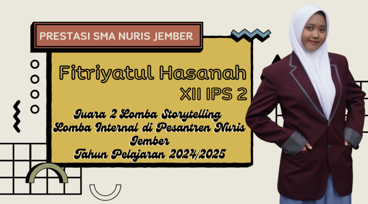 Pesantren Nuris – Sebuah kebanggaan kembali diraih oleh SMA Nuris Jember melalui salah satu siswi berbakatnya, Fitriyatul Hasanah. Siswi kelas XII IPS 2 yang akrab disapa Fitri ini berhasil meraih Juara 2 Lomba Storytelling dalam ajang internal yang diadakan di Pesantren Nuris Jember pada bulan Mei lalu. Saat meraih prestasi ini, Fitri masih duduk di kelas XI IPS 2. Prestasi ini tak hanya menjadi kebanggaan bagi sekolah, tetapi juga menjadi bukti dari kegigihan dan bakat yang dimiliki Fitri.