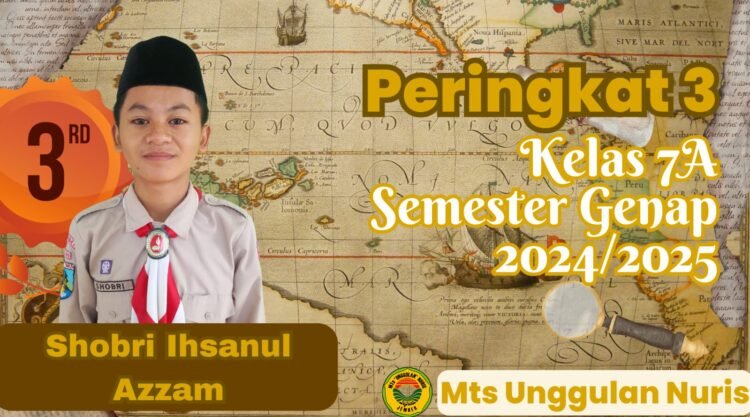 Pesantren Nuris – Shobri Ihsanul Azzam, siswa kelas 7A MTs Unggulan Nuris, kembali menorehkan prestasi gemilang dengan keberhasilan yang tidak hanya di bidang non-akademis tetapi juga di bidang akademis dengan berhasil menduduki peringkat ketiga di kelasnya pada semester genap tahun ajaran 2024/2025. Kesuksesan ini adalah bukti nyata dari ketekunan dan semangat belajar Shobri yang tinggi.