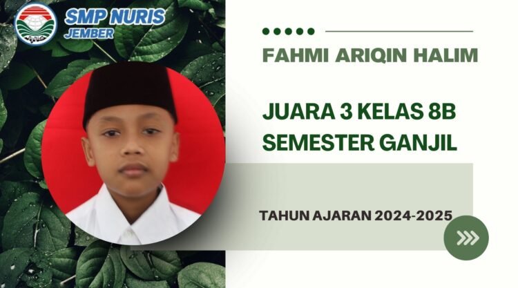 Pesantren Nuris – Kabar gembira datang dari SMP Nuris Jember. Seorang siswa bernama Fahmi Ariqin Halim berhasil menorehkan pencapaian gemilang. Ia dinobatkan sebagai juara 3 di kelas 8B pada tahun ajaran 2024/2025 semester ganjil. Keberhasilan Fahmi membuktikan bahwa fokus dan manajemen waktu yang baik adalah kunci utama meraih kesuksesan.