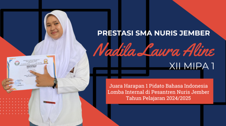 Pesantren Nuris – Siswi kelas XII MIPA 1 SMA Nuris Jember, Nadila Laura Aline, berhasil menorehkan prestasi dalam lomba Pidato Bahasa Indonesia dengan meraih Juara Harapan 1 dalam lomba internal di Pesantren Nuris Jember, bulan Mei lalu. Siswi yang akrab disapa Aline ini, mewakili kelasnya dan berpartisipasi atas kemauan sendiri. Selain itu, ia juga ingin melatih kemampuannya berbicara di depan banyak orang. Saat mengikuti lomba ini Aline masih duduk di kelas XI.