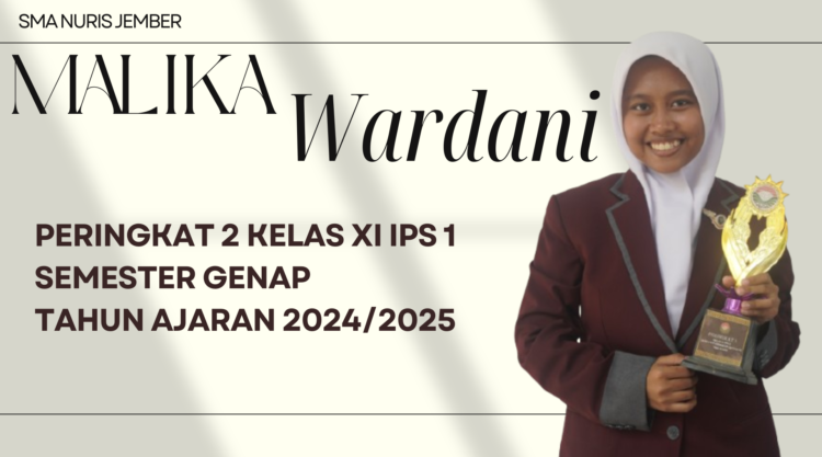 Pesantren Nuris – Mencapai prestasi mungkin membutuhkan kerja keras, tetapi mempertahankannya butuh konsistensi. Itulah yang dibuktikan oleh Malika Wardani, siswi kelas XII IPS 1 SMA Nuris Jember, yang kembali meraih peringkat 2 sewaktu duduk di kelas XI IPS 1 semester genap tahun ajaran 2024/2025. Hasil ini sama persis dengan pencapaiannya di semester sebelumnya.