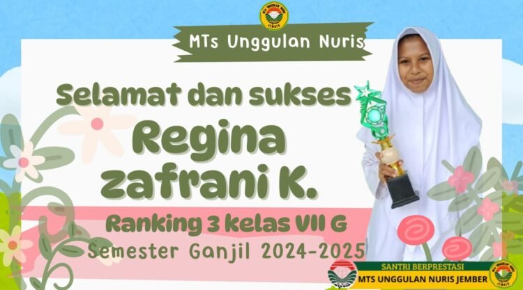 Pesantren Nuris – Awal tahun ajaran 2024-2025 menjadi momen penuh kebanggaan bagi MTs Unggulan Nuris Jember, khususnya kelas VII G. Salah satu siswinya, Regina Zafrani K., berhasil menorehkan prestasi dengan meraih juara 3 di semester ganjil. Keberhasilan ini menunjukkan kesungguhan Regina dalam menyeimbangkan belajar dan aktivitas sekolah sehari-hari.