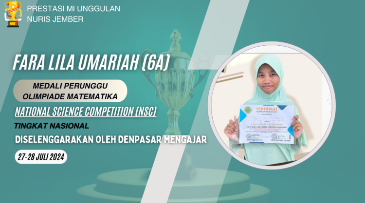 Pesantren Nuris – Ada pemandangan yang sudah menjadi hal biasa namun tetap istimewa di MI Unggulan Nuris Jember. Pemandangan itu adalah ketika nama Fara Lila Umariah diumumkan sebagai peraih juara. Siswi dari kelas 6A ini kembali menambah panjang daftar prestasinya dengan membawa pulang medali dari panggung olimpiade tingkat nasional.