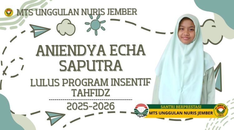 Pesantren Nuris – Kebahagiaan kembali menyelimuti program intensif tahfidz tahun ajaran 2025/2026, setelah salah satu siswi MTs Unggulan Nuris Jember, Aniendya Echa Saputra, dinyatakan resmi lulus dari masa karantina. Program yang digelar sebagai tahap awal menuju kelas tahfidz reguler ini berlangsung dengan suasana penuh semangat, disiplin, dan dukungan dari para pembimbing.