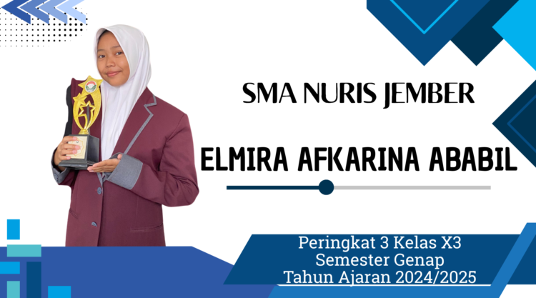 Selamat, Elmira Afkarina Ababil! Teruslah berprestasi dan semangat karena hal itu akan membawa menuju masa depan yang lebih cerah. Semangat dan kegigihan Elmira menjadi inspirasi bagi seluruh siswa-siswi SMA Nuris Jember. Perjalanan Elmira membuktikan bahwa dengan tekad kuat, kita bisa meraih impian, sejalan dengan semboyan SMA Nuris Jember, “Road to Bright Future”. [ANF. Red]