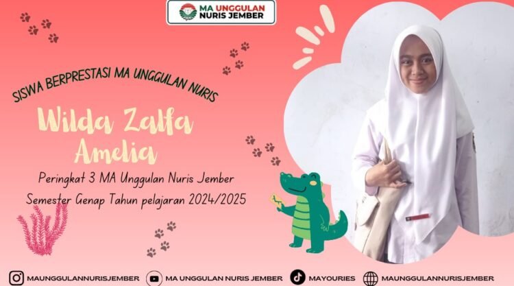 Pesantren Nuris — Di balik ketenangan dan ketekunannya, siapa sangka seorang siswi dengan bakat menggambar ini mampu mengukir prestasi akademik yang membanggakan. Dialah Wilda Zalfa Amelia, siswi kelas XI Agama 3 MA Unggulan Nuris Jember, yang berhasil meraih peringkat 3 terbaik di kelasnya pada Semester Genap Tahun Pelajaran 2024/2025. Prestasi ini menjadi bukti bahwa kerja keras dan keyakinan pada tujuan hidup akan selalu menemukan jalannya.