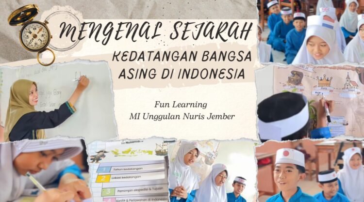 Pesantren Nuris – Kegiatan fun learning kembali mewarnai suasana belajar di MI Unggulan Nuris Jember pada Sabtu, 30 Agustus 2025. Kali ini, kelas 6A tampil penuh antusias dalam pembelajaran yang dipandu oleh Ustadzah Siti Anisa, S.Pd., yang akrab disapa Ustadzah Anisa. Dengan gaya mengajar yang ceria dan kreatif, beliau mengajak para siswa menjelajahi materi “Mengenal Sejarah Kedatangan Bangsa Asing di Indonesia” dengan cara yang menyenangkan dan interaktif.