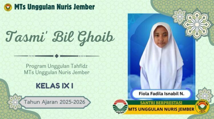 Pesantren Nuris – MTs Unggulan Nuris Jember kembali menorehkan kebanggaan lewat capaian para santrinya dalam program unggulan tahfidz. Salah satu siswi kelas IX I, Fiola Fadila Isnabila N., berhasil menyelesaikan tasmi’ bil ghoib satu juz dengan lancar dan penuh penghayatan.