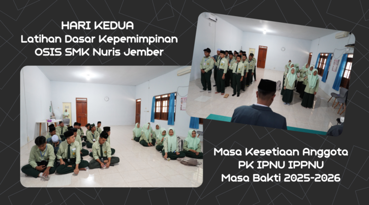 Pesantren Nuris – Kegiatan hari kedua Latihan Dasar Kepemimpinan (LDK) OSIS SMK Nuris Jember yang dirangkai dengan Masa Kesetiaan Anggota (MAKESTA) Pimpinan Komisariat IPNU-IPPNU masa bakti 2025–2026 berlangsung pada Rabu, 15 Oktober 2025 di Aula SMK Nuris Jember. Kegiatan ini menjadi lanjutan dari pelatihan kepemimpinan yang bertujuan membentuk karakter tangguh, berorganisasi, serta menanamkan nilai-nilai Nahdlatul Ulama di kalangan pelajar.