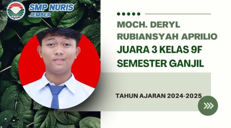 Pesantren Nuris – Kabar gembira datang dari SMP Nuris Jember. Seorang siswa bernama Moch. Deryl Rubiansyah Aprilio berhasil menorehkan pencapaian membanggakan. Siswa dari kelas 9F ini dinobatkan sebagai juara 3 di kelasnya pada tahun ajaran 2024/2025 semester ganjil. Prestasi Deryl membuktikan bahwa memanfaatkan setiap kesempatan untuk belajar adalah kunci untuk unggul dalam akademik.