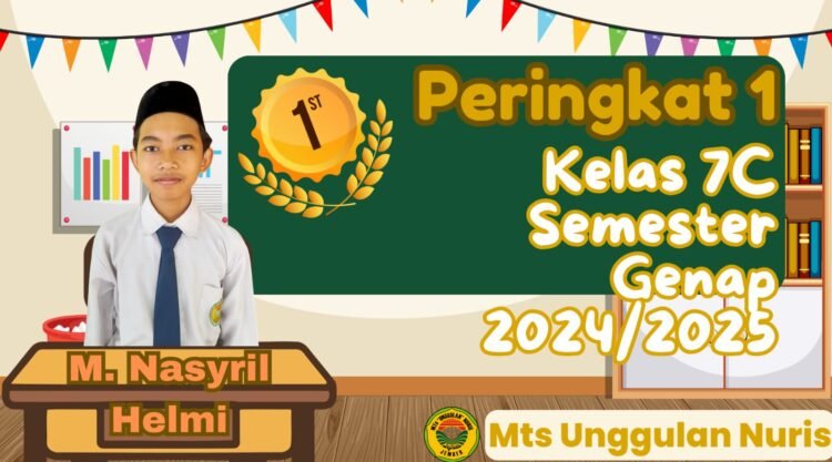 Pesantren Nuris – Mengembangkan kemampuan akademis memerlukan komitmen dan semangat yang tinggi. Proses ini menuntut ketekunan dan tekad yang kuat untuk mencapai tujuan yang diinginkan. M. Nasyril Helmi, atau yang lebih dikenal dengan Nasyril, siswa kelas 7C MTs Unggulan Nuris, telah menunjukkan kemampuan luar biasa dengan meraih peringkat 1 di kelas 7C pada tahun ajaran 2025/2026.