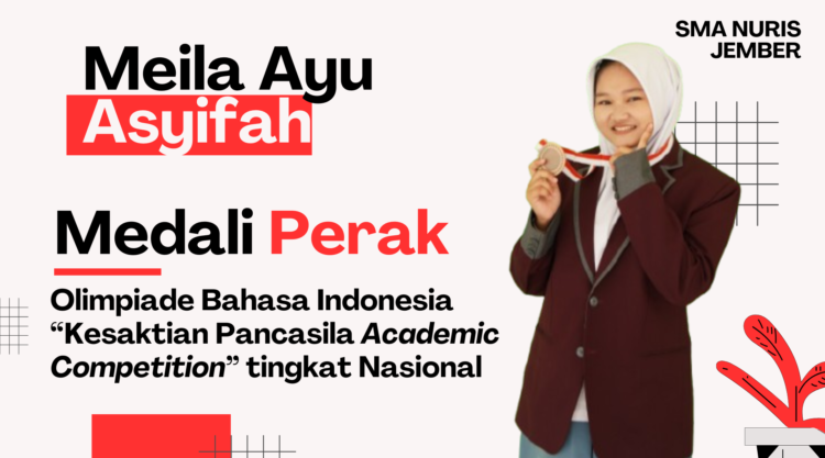 Pesantren Nuris – Kabar membanggakan datang dari salah satu siswi SMA Nuris Jember. Meila Ayu Asyifah, siswi kelas XII IPS 2 yang berasal dari Kabupaten Bantul, Yogyakarta, berhasil menyabet Medali Perak dalam ajang Olimpiade Bahasa Indonesia pada Kesaktian Pancasila Academic Competition. Prestasi ini menjadi bukti nyata konsistensi belajarnya, sekaligus membuka jalan baginya untuk meraih cita-cita menjadi orang sukses yang bermanfaat.