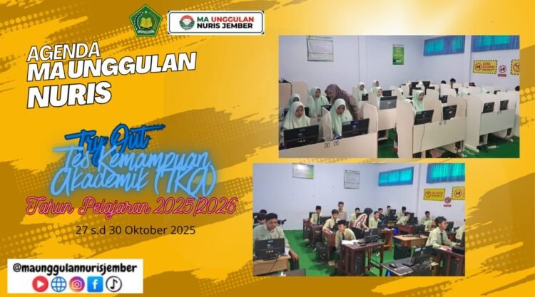 Pesantren Nuris – Pekan ini, siswa kelas akhir MA Unggulan Nuris tampak antusias dan bersemangat melaksanakan gladi bersih pelaksanaan Tes Kemampuan Akademik (TKA) tahun pelajaran 2025/2026 mulai 27 s.d 28 Oktober 2025 kemarin. Tak hanya itu, pada 29 dan 30 Oktober 2025 kemarin mereka juga sukses melaksanakan try out TKA dengan maksimal.