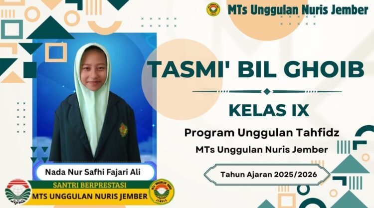 Pesantren Nuris – Siswi kelas IX I, Nada Nur Shafi Fajari Ali, berhasil menuntaskan tasmi’ 1 juz (juz 1) sekali duduk dalam program unggulan Tahfidz Al-Qur’an di MTs Unggulan Nuris Jember. Prestasi ini menjadi bukti ketekunan dan kesungguhannya dalam menjaga serta menguatkan hafalan Al-Qur’an.