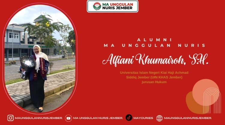 Pesantren Nuris — Di balik senyumnya yang tenang dan pembawaannya yang sederhana, terdapat semangat besar dalam diri seorang perempuan muda bernama Alfiani Khumairoh, alumni MA Unggulan Nuris angkatan 2021. Sosoknya mencerminkan perpaduan antara keteguhan hati seorang santri, visi besar seorang pemimpi, dan semangat praktis dari calon wirausaha masa depan. Dari Kalisat, Jember, Alfiani memulai perjalanannya—dan kini, langkahnya semakin dekat menuju gelar sarjana hukum di salah satu kampus kebanggaan umat Islam, UIN Kiai Haji Achmad Siddiq Jember.