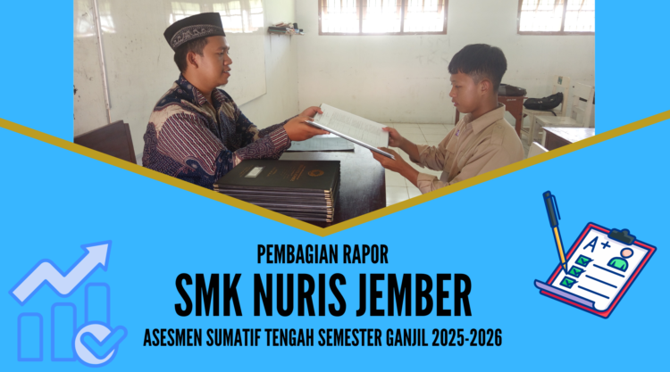 Pesantren Nuris – SMK Nuris Jember melaksanakan pembagian rapor tengah semester ganjil tahun ajaran 2025/2026 kepada siswa kelas X dan XI jurusan Teknik Komputer dan Jaringan (TKJ) serta Teknik Otomotif (TO) pada Sabtu, 4 Oktober 2025. Sementara itu, kelas XII belum menerima rapor karena masih melaksanakan agenda Praktik Kerja Lapangan (PKL). Kegiatan ini berlangsung tertib dan lancar di lingkungan sekolah sejak pukul 12.00 WIB.