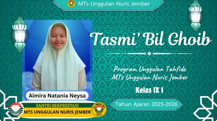 Pesantren Nuris – Program unggulan tahfidz di MTs Unggulan Nuris Jember kembali menghadirkan kabar membanggakan. Salah satu siswi kelas IX I, Almira Natania Neysa, berhasil menyelesaikan tasmi’ bil ghoib satu juz dengan lancar dan penuh keyakinan.