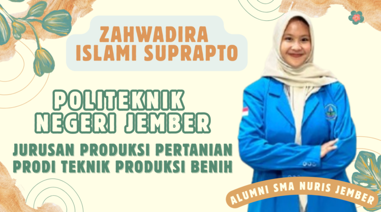 Pesantren Nuris – Zahwadira Islami Suprapto, membawa kabar menggembirakan untuk almamaternya SMA Nuris Jember. Alumni yang lulus tahun 2025 ini berasal dari Garahan, Silo, Jember. Dira panggilan akrabnya, berhasil diterima di Politeknik Negeri Jember (POLIJE) melalui jalur Mandiri. Zahwadira kini tengah menempuh pendidikan di Jurusan Produksi Pertanian, Program Studi Teknik Produksi Benih, di mana sesuai dengan cita-citanya yaitu menjadi pengusaha benih sukses.