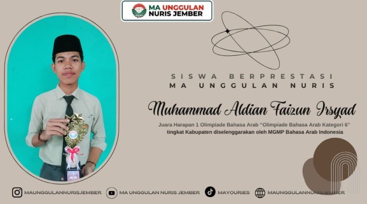 Pesantren Nuris — Muhammad Aldian Faizun Irsyad, siswa kelas XII A MA Unggulan Nuris Jember yang akrab disapa Aldian, kembali menunjukkan kualitasnya sebagai pelajar berprestasi setelah berhasil meraih Juara Harapan 1 dalam ajang Olimpiade Bahasa Arab “Olimpiade Bahasa Arab Kategori 6” tingkat Kabupaten yang diselenggarakan oleh MGMP Bahasa Arab Indonesia. Prestasi ini bukan hanya menjadi bukti bahwa kemampuan Aldian dalam bidang Bahasa Arab terus berkembang pesat, tetapi juga menjadi cerminan bahwa dukungan guru-guru di MA Unggulan Nuris yang melihat potensi besar dalam dirinya tidaklah salah. Aldian dikenal sebagai siswa yang memiliki kegemaran membaca sejak kecil, sebuah kebiasaan yang secara tidak langsung membentuk cara berpikirnya, memperkaya wawasannya, serta menambah sensitivitas bahasanya. Di balik itu semua, ia menyimpan sebuah cita-cita yang luhur, yaitu menjadi seorang penulis, sebuah profesi yang menurutnya mampu menggerakkan pikiran dan memberi dampak luas kepada banyak orang.