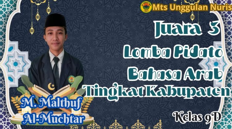 Pesantren Nuris – Semangat mendalami ilmu agama dan literasi Arab ditunjukkan oleh M. Malthuf Al Muchtar, siswa Kelas 9D dari Madrasah Tsanawiyah (MTs) Unggulan Nuris. Siswa yang akrab disapa Maltuf ini berhasil meraih prestasi membanggakan sebagai Juara III dalam ajang Pidato Bahasa Arab bertajuk “Bahana Muharram 2024” tingkat Kabupaten Jember.