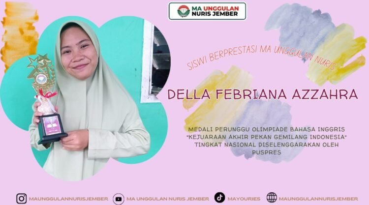 Pesantren Nuris — Della Febriana Azzahra, siswi kelas XII E MA Unggulan Nuris Jember, kembali mengharumkan nama sekolah melalui capaian prestasi yang membanggakan di tingkat nasional. Berasal dari Jembrana, Bali, Della dikenal sebagai pribadi yang tekun, teliti, dan penuh rasa ingin tahu, karakter yang selaras dengan hobinya dalam memasak dan membaca, dua aktivitas yang selalu ia jadikan ruang untuk belajar memahami sesuatu secara lebih mendalam. Keinginannya untuk menjadi seorang ahli gizi telah membentuknya menjadi sosok yang terbiasa bekerja dengan disiplin dan metodis, sehingga tidak mengherankan apabila semangat belajarnya kemudian menghantarkan dirinya meraih Medali Perunggu dalam Olimpiade Bahasa Inggris Kejuaraan Akhir Pekan Gemilang Indonesia yang diselenggarakan secara nasional oleh Puspres. Pencapaian ini bukan hanya sekadar bukti kemampuan akademiknya, tetapi juga gambaran nyata dari kerja keras, ketekunan, serta keberanian untuk mencoba hal-hal baru yang menantang kapasitas diri.