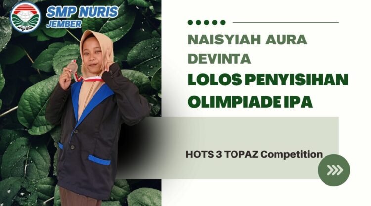 Pesantren Nuris – SMP Nuris Jember kembali menorehkan prestasi gemilang melalui siswinya, Naisyiah Aura Devinta. Ia berhasil lolos pada tahap penyisihan bidang IPA dalam ajang HOTS 3 TOPAZ Competition yang dilaksanakan pada 12 Oktober 2025 di SDN Kepatihan 3 Jember. Pencapaian ini menjadi bukti bahwa ketekunan belajar mampu membawa hasil membanggakan bagi sekolah.