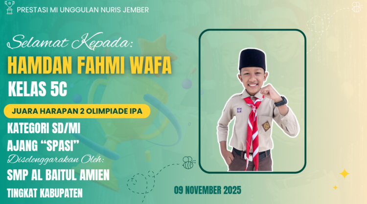 Capaian ini semakin memperpanjang daftar prestasi yang pernah ia ukir, sekaligus menegaskan bahwa MI Unggulan Nuris Jember tak pernah berhenti melahirkan talenta-talenta berbakat di bidang akademik. Bagi Fahmi, ilmu pengetahuan alam tampaknya bukan sekadar pelajaran di madrasah, melainkan sebuah tantangan yang selalu menarik untuk ditaklukkan.