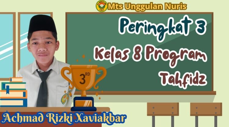 Pesantren Nuris – Achmad Rizqi Xaviekbar, siswa MTs Unggulan Nuris, kembali menunjukkan prestasinya dengan meraih Peringkat 3 program tahfidz MTs Unggulan Nuris Jember Semester Genap Tahun Pelajaran 2024-2025. Siswa yang lebih dikenal dengan nama Akbar ini menunjukkan kesungguhannya dalam menghafal Al-Quran dan berhasil mencapai prestasi yang membanggakan.