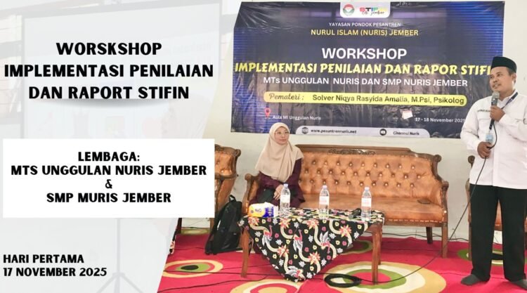 Pesantren Nuris — Hari pertama pelaksanaan Workshop Implementasi Penilaian dan Rapor STIFIn untuk jenjang MTs Unggulan Nuris Jember dan SMP Nuris Jember Tahun Pelajaran 2025–2026 berlangsung sangat meriah. Kegiatan ini dilaksanakan pada tanggal 17 November 2025 di Aula MI Nuris Jember. Serangkaian kegiatan ini menjadi ruang penuh inspirasi bagi para pendidik dan struktural yang hadir.
