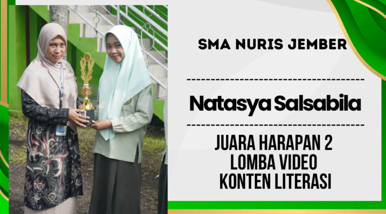 Pesantren Nuris – Natasya Salsabila Putri, siswi kelas XII IPS 1 SMA Nuris Jember yang akrab disapa Tasya, kembali membawa kebanggaan bagi sekolah setelah berhasil meraih Juara Harapan 2 dalam kategori Video Konten Literasi pada ajang Festival Literasi 2025 tingkat Kabupaten Jember. Lomba bergengsi ini diselenggarakan oleh Dinas Perpustakaan dan Kearsipan Kabupaten Jember pada bulan Oktober hingga September 2025 dan diikuti oleh pelajar dari berbagai sekolah di wilayah Kabupaten Jember.