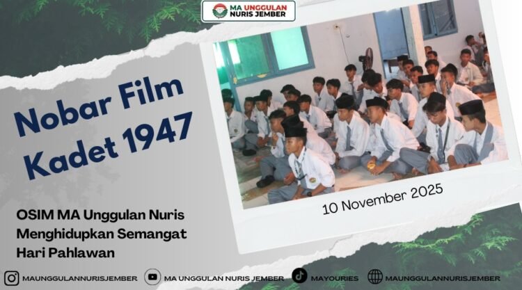 Pesantren Nuris – Suasana dalem selatan Pondok Pesantren Nurul Islam Jember pada 10 November 2025 terasa berbeda dari biasanya. Hari itu, OSIM MA Unggulan Nuris menggelar kegiatan nonton bareng film Kadet 1947, sebuah acara sederhana namun penuh makna dalam rangka memperingati Hari Pahlawan. Tidak hanya sekadar nonton film, kegiatan ini dirancang agar para siswa dapat menyelami pesan moral, nilai perjuangan, serta sejarah yang terkandung dalam kisah para kadet muda angkatan udara Indonesia.