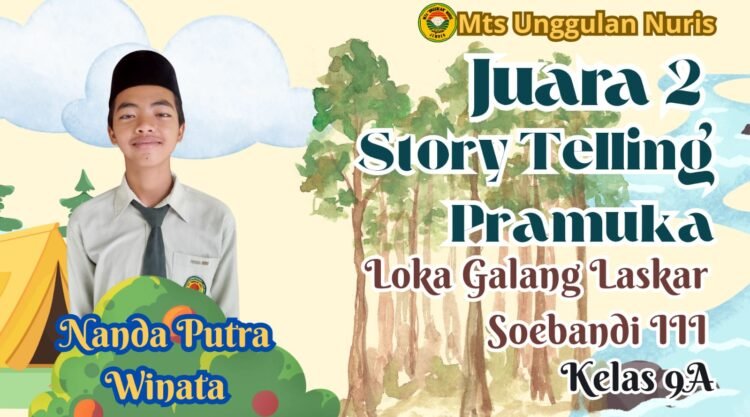 Pesantren Nuris – Nanda Putra Winata, siswa MTs Unggulan Nuris, kembali mendapatkan prestasi yang membanggakan. Siswa yang lebih dikenal dengan nama Nanda. Siswa kelas 9A ini berhasil meraih Juara 2 Story Telling Pramuka “Lomba Pramuka Loka Galang Laskar Soebandi III” tingkat Kabupaten yang diselenggarakan oleh SMK dr. Soebandi Jember. Nanda, yang berasal dari Wuluhan, menunjukkan kemampuan luar biasa dalam membawakan cerita dengan ekspresi yang menarik dan suara yang jelas.