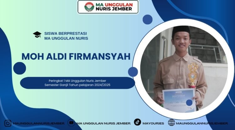 Pesantren Nuris — Dalam setiap proses belajar, selalu ada cerita panjang yang tidak tampak oleh mata. Di balik senyuman seorang siswa berprestasi, tersimpan perjalanan penuh lika-liku, semangat yang tidak padam, serta keyakinan kuat bahwa usaha tidak akan pernah mengkhianati hasil. Begitulah perjalanan yang dijalani oleh Moh Aldi Firmansyah, siswa kelas XIIB MA Unggulan Nuris, yang berhasil meraih peringkat 1 pada semester ganjil tahun pelajaran 2024/2025. Prestasi yang ia dapatkan bukan sekadar kebetulan, tetapi hasil dari rangkaian ikhtiar panjang yang ia jalani dengan serius, tekun, dan penuh rasa syukur.