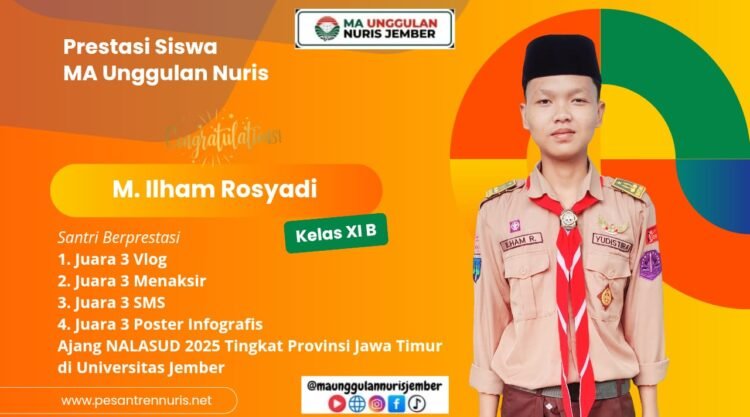 Santri kelahiran Denpasar tahun 2009 ini turut serta memberikan segala potensi terbaik bersama tim Pramuka Yudhisuma MA Unggulan Nuris pada gelaran kompetisi Pramuka yang diselenggarakan oleh Universitas Jember (UNEJ) tersebut. Mereka pun berhasil meraih 4 piala yakni, juara 3 menaksir, juara 3 infografis, meraih juara 3 SMS (Sandi, Morse, dan Semaphore), dan juara 3 VLOG. Torehan prestasi ini turut menambah catatan prestasi lembaga MA Unggulan Nuris di semester ganjil tahun ajaran 2025/2026 yang sedang berjalan.