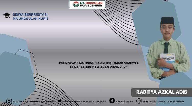 Pesantren Nuris — Raditya Azkal Adib atau yang akrab disapa Radit kembali menjadi sorotan positif di lingkungan MA Unggulan Nuris Jember setelah berhasil meraih peringkat tiga pada Semester Genap Tahun Pelajaran 2024/2025. Prestasi ini menjadi bukti nyata bahwa tekad kuat dan proses panjang yang dijalani seorang siswa tidak akan pernah sia-sia, terlebih ketika dibarengi dengan kedisiplinan dalam belajar serta dorongan untuk terus memperbaiki diri. Bagi Radit, capaian tersebut bukan hanya angka yang terpampang di laporan akademik, melainkan sebuah pembuktian terhadap dirinya sendiri bahwa perubahan yang ia inginkan benar-benar mungkin diwujudkan melalui usaha yang tidak mengenal kata menyerah.